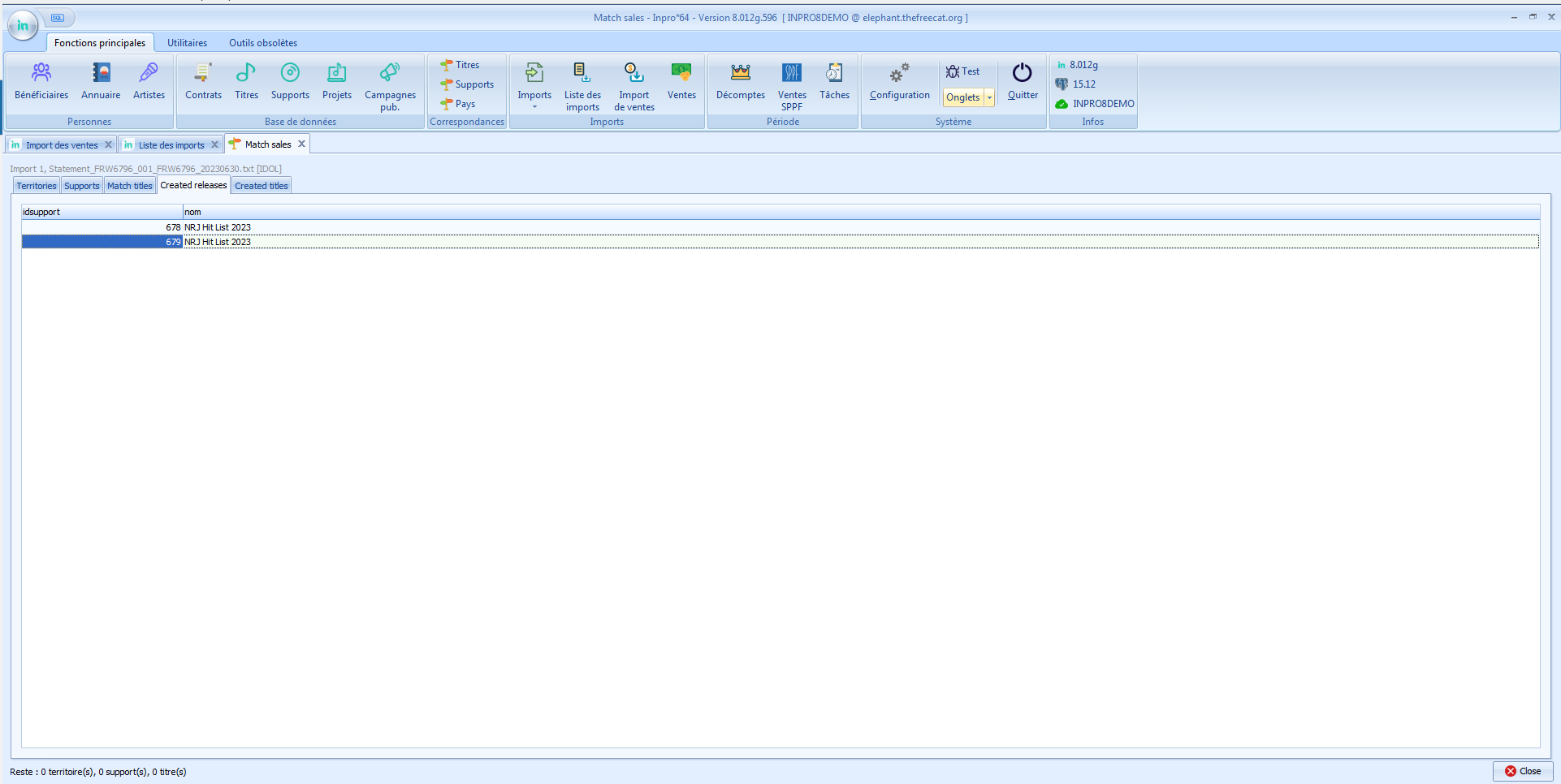 Tous les titres et supports créés se retrouvent dans les onglets "Created releases et "Created Titles".