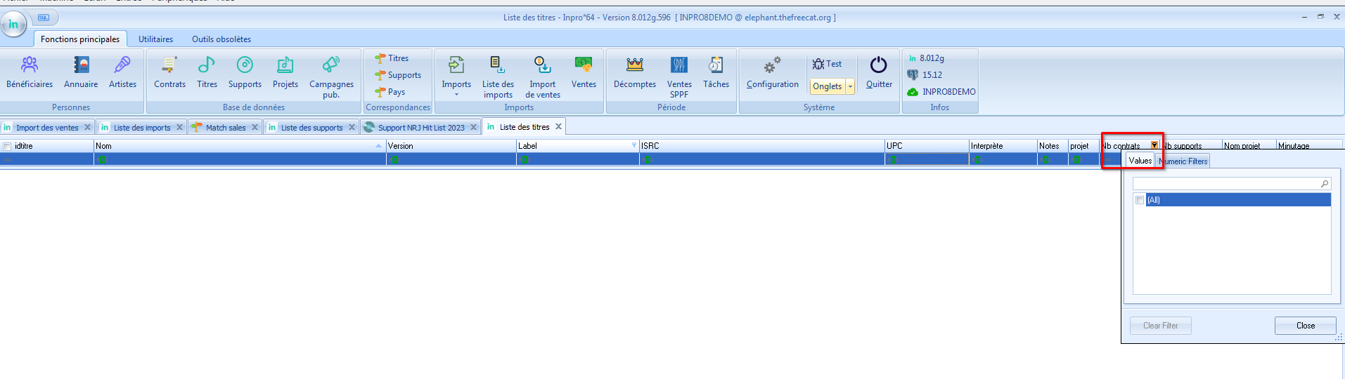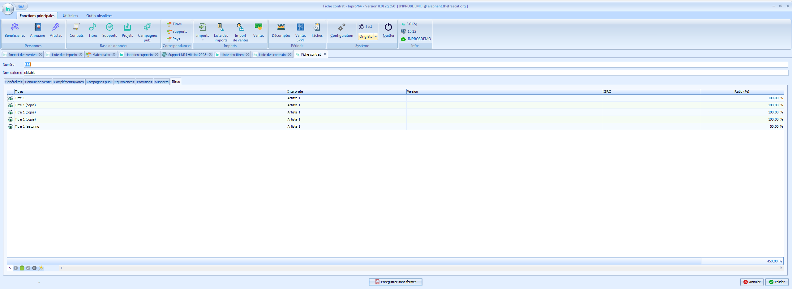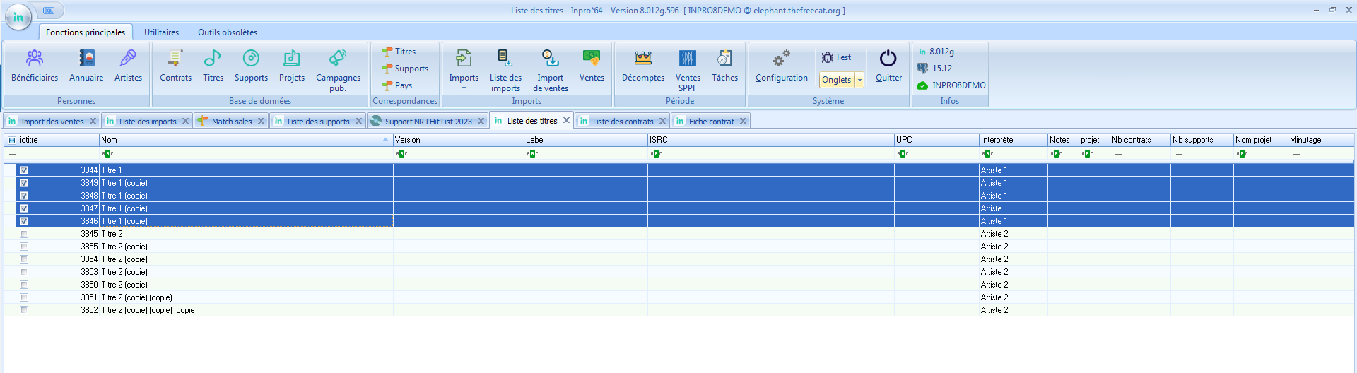 Tous les titres liés à ce code seront listés, et si vous avez eu des ventes pour tous les titres de ce supports il seront tous présents.