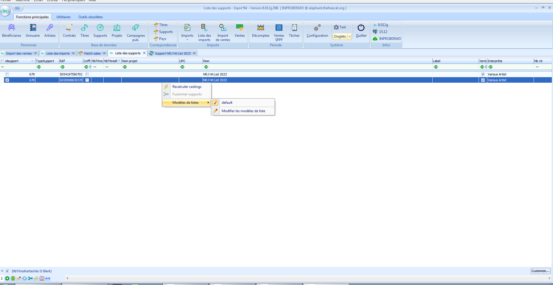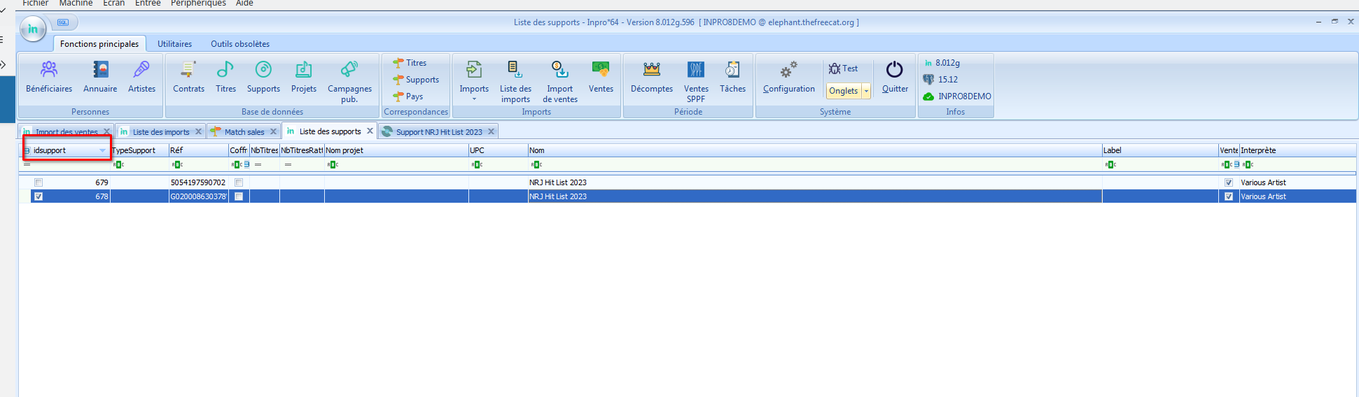 Pour cela double cliquer sur le support ou si vous en avez beaucoup car beaucoup d'imports de ventes à gérer, rendez-vous directement dans la liste des supports et filtrer sur :