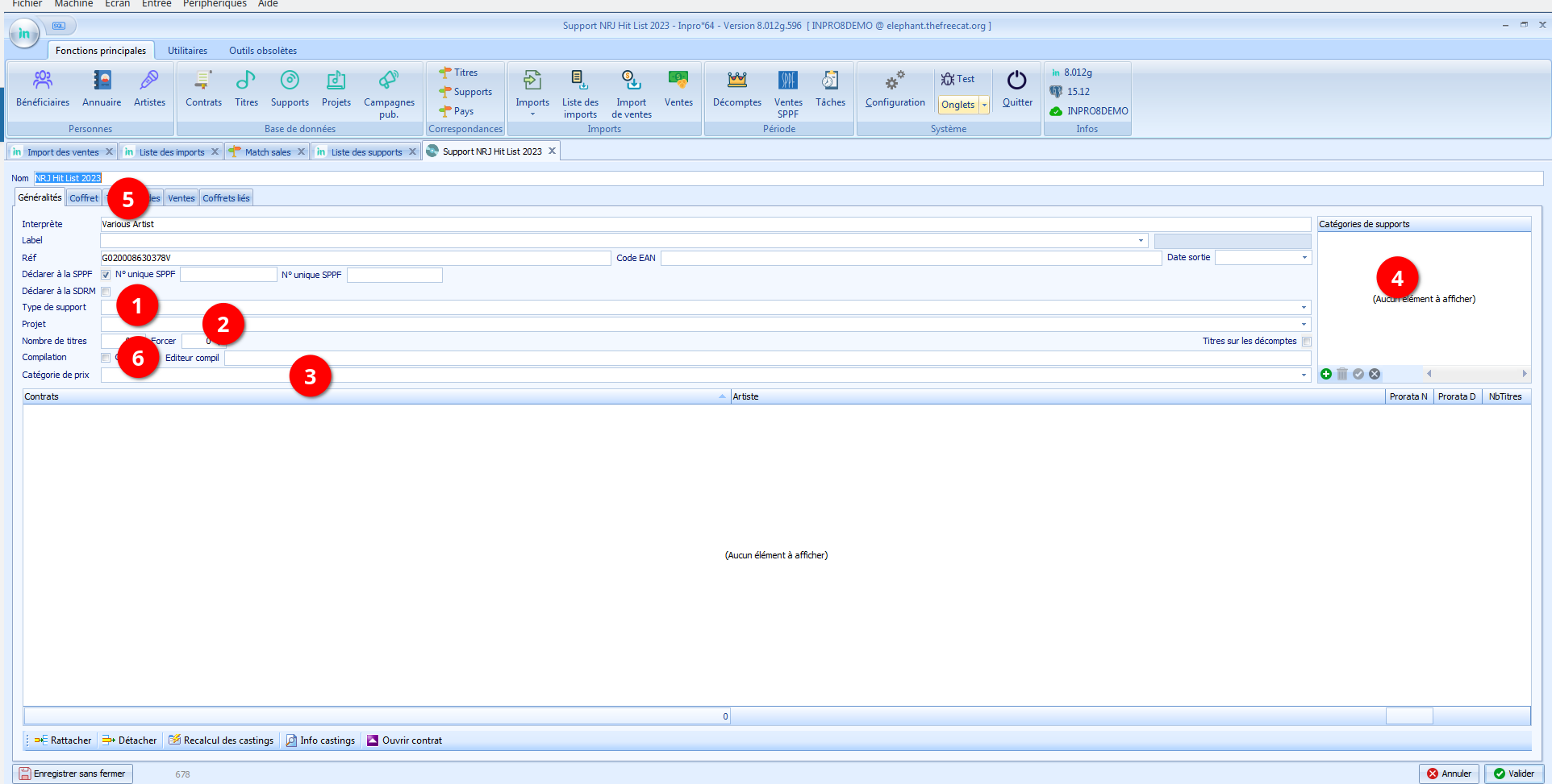 Il va falloir rattacher des titres au supports listés ainsi que remplir diverses informations sur le support avec que les conditions spé.