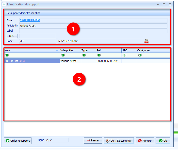 Il s'agit ici de séléctionner le bon support et faire OK ou créer le support s'il est absent de votre base de données.