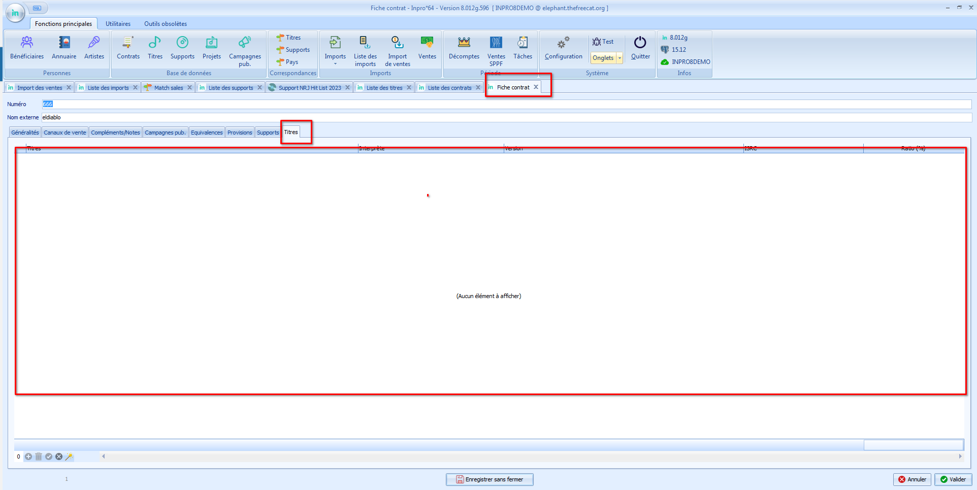 Si ces titres ont également été créé au moment de l'import de ventes alors aucun contrat n'apparaitra.
