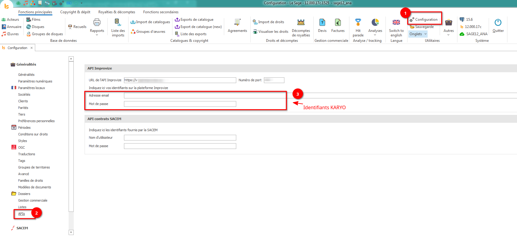 Configuration de la connexion à Karyo