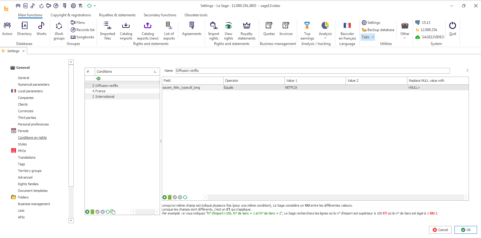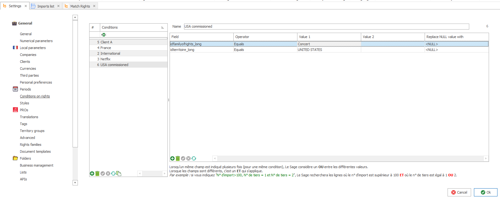 An other example can be taken on a specific deal with a third party that claims a share if the rights come from a concert in a certain country or from the broadcasting channel :